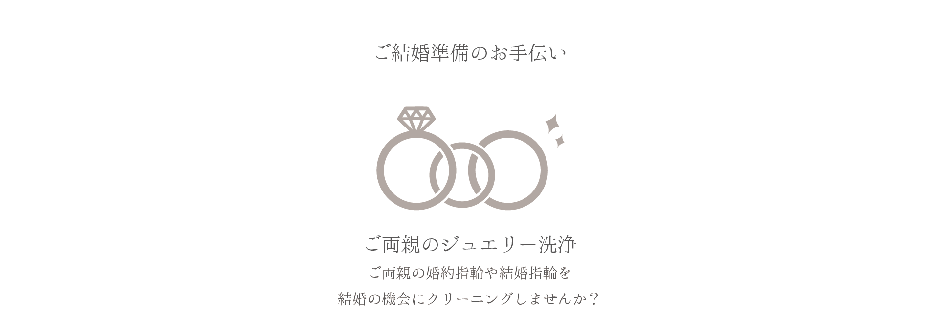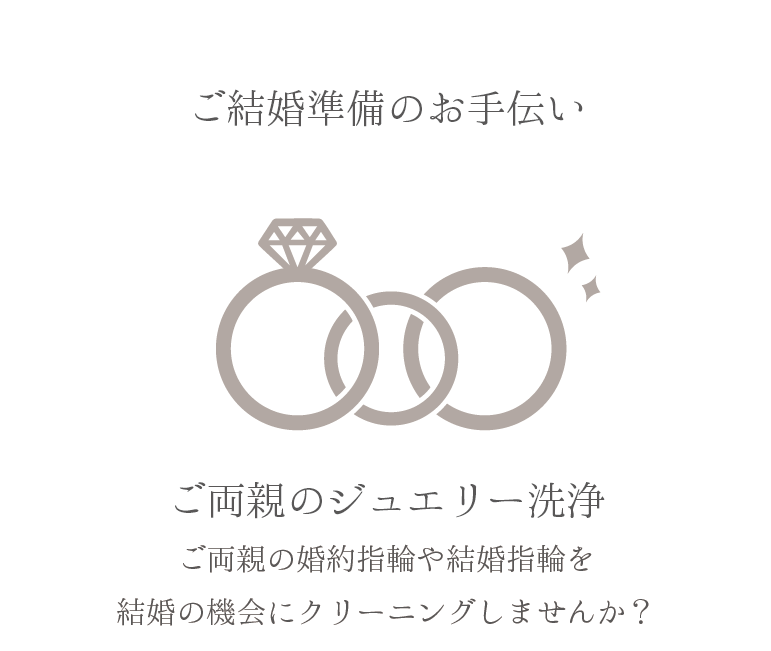 金・プラチナジュエリーはやわらかい布等で拭いていただき、ダイヤモンドは中性洗剤の入ったお水につけ置きすることで輝きが戻ります。