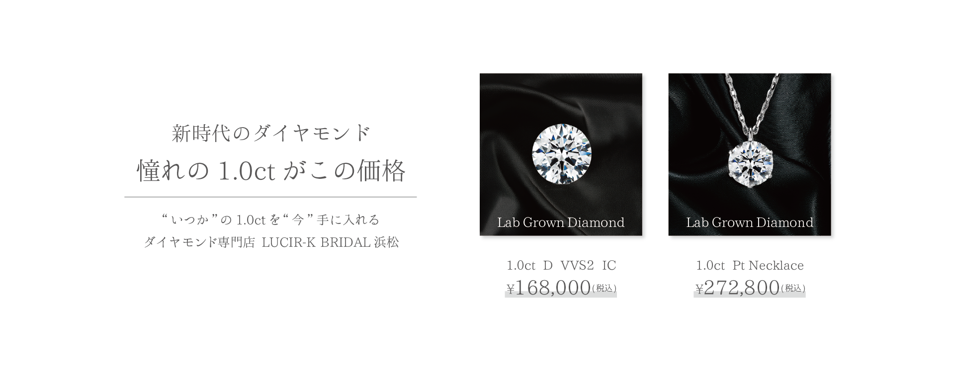 どちらも1.0ctという選択ができるのは、ダイヤモンドを専門に扱うLUCIR-K BRIDAL浜松だからこそです。それぞれの成り立ちや魅力、違いを正しく理解した上で、実物を見比べながら選べる安心感。ご予算や価値観に寄り添い、どちらか一方に偏らない、誠実なご提案を大切にしています。
