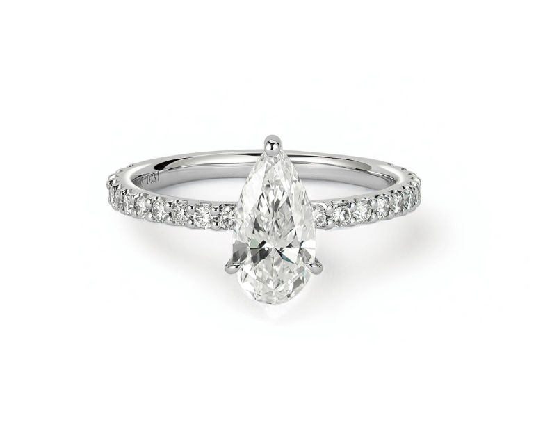 VIEW MOREルシルカットは、その外観からペアシェイプに似ていると見られることがありますが、その印象は異なります。このカットの出発点は、ダイヤモンドの輝きの最高峰であるラウンドブリリアントカットでダイヤモンドが持つ最大限の光の反射と輝きの構造をベースに、革新的なデザインを施しました。最大の特徴は、1:2という洗練されたプロポーション比率です。この比率と緻密なファセット設計により、ラウンドブリリアントの持つ強烈な輝きを保ちながらも、より長くシャープでエレガントなシルエットを実現しています。ルシルカットは、伝統的な輝きとモダンでシャープな美しさを融合させた、まさに次世代のダイヤモンドカットです。