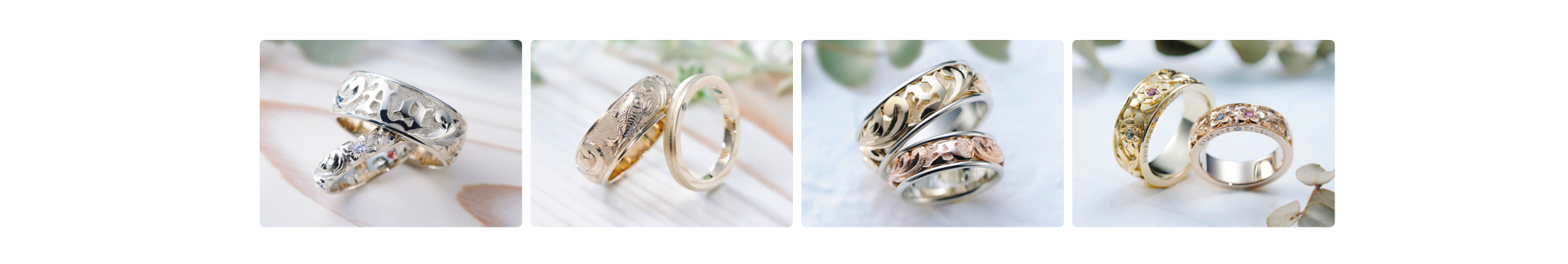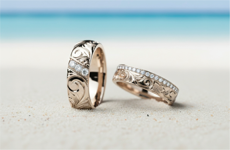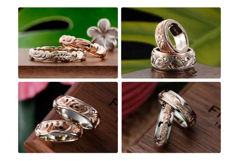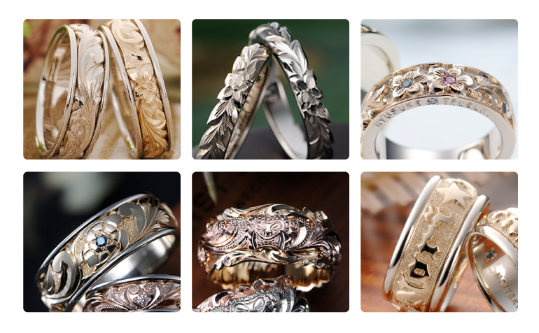 デザイン リングの幅 素材 そして想いを込めた彫り模様の組み合わせは無限大。ハワイアンジュエリーの知識を持った専任スタッフが おふたりの希望を丁寧にヒアリングし 世界でひとつの結婚指輪をご提案します。