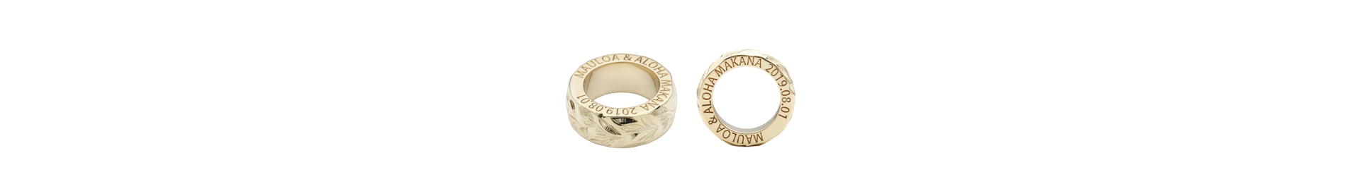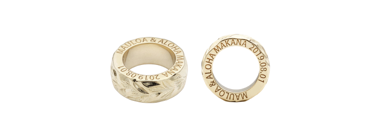 マカナのベビーリングは、リング側面にメッセージ刻印を入れられます。アルファベットの書体はゴシック体の大文字のみとなります。指輪をご納品後でも文字数制限内であれば追加で刻印を入れられます。