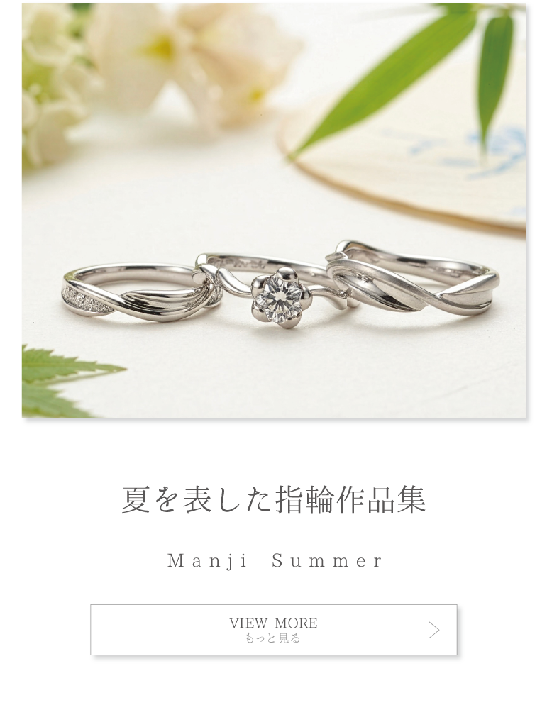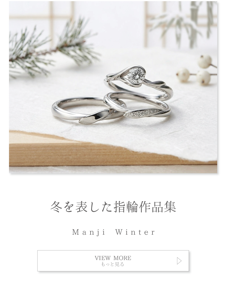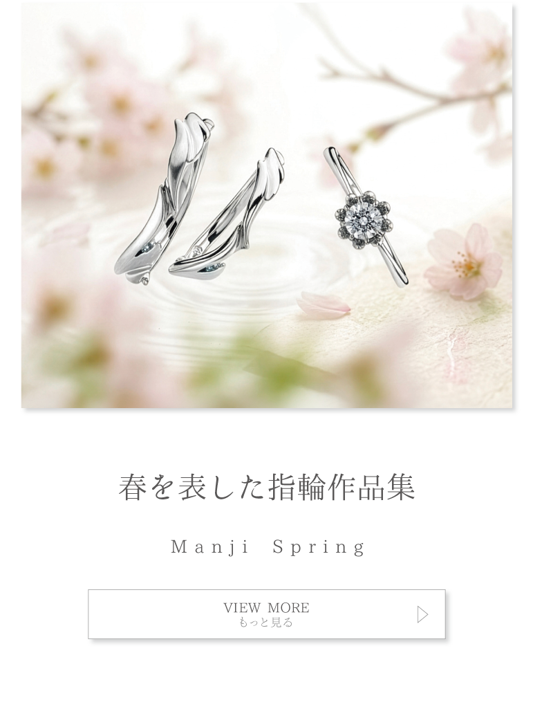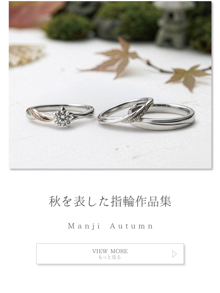 婚約指輪、結婚指輪に春夏秋冬の意味を込めることで、ふたりの思い出や未来の時間までも象徴する特別な存在になります。例えば春は始まり、夏は情熱、秋は成熟、冬は絆といったように、それぞれに深い意味があります。萬時 の指輪は、こうした季節のストーリーを日常に取り入れられるため、身に着けるたびに想いを感じられる点が大きな魅力です。