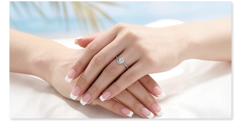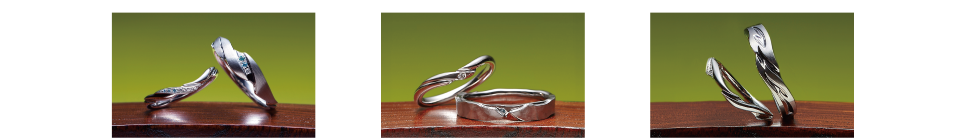 まぶしい陽射しと青空が広がる夏は、生命の力強さと開放感に満ちた季節です。きらめく水面や心地よい風の中で過ごすひとときは、おふたりの思い出をより鮮やかに彩ります。そんな夏の情景を指輪に込め、特別な輝きとして表現しました。