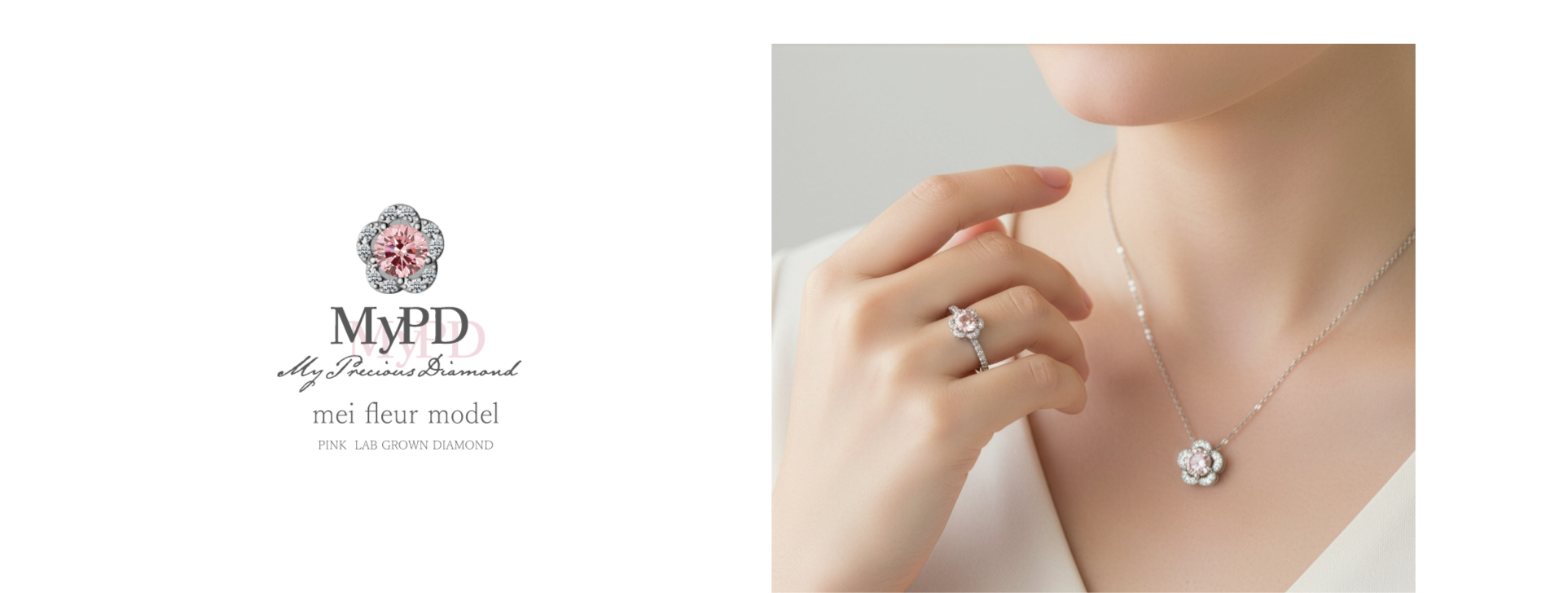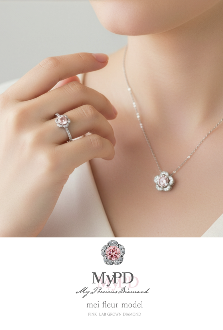 My Precious Diamondは、贅沢と革新が融合したジュエリーブランドです。ピンクダイヤモンドライン「mei fleur model」メイフルールモデルは、花の美しさをインスパイアし、淡いピンクのダイヤモンドが光を受けて神秘的な輝きを放ちます。花のような儚さと力強さを表現し、特別な瞬間を彩るためにデザインされています。