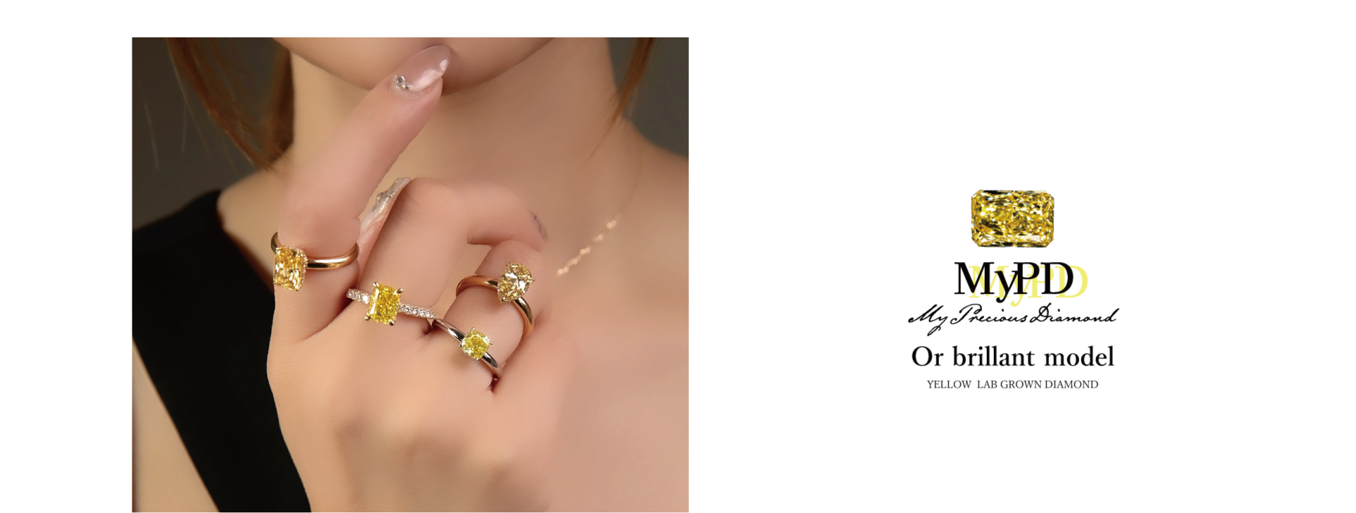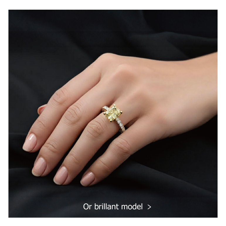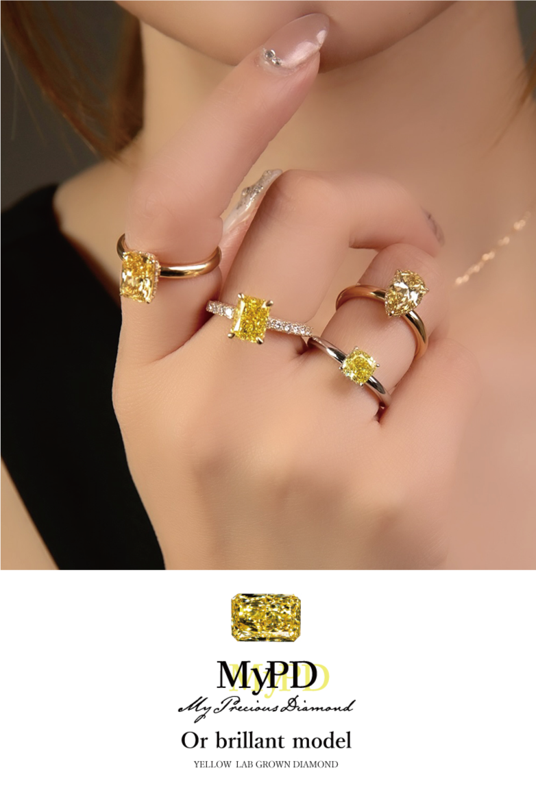 My Precious Diamondのイエローダイヤモンドライン「Or brillant model」オロブリリアントモデル。このモデルは、太陽のように輝くゴールドと神秘的なイエローダイヤモンドが織りなす美しさを持ち、特別な瞬間を引き立てます。その輝きは見る者を夢の世界へと誘い、贈り物や自分へのご褒美に最適な特別なアートです。