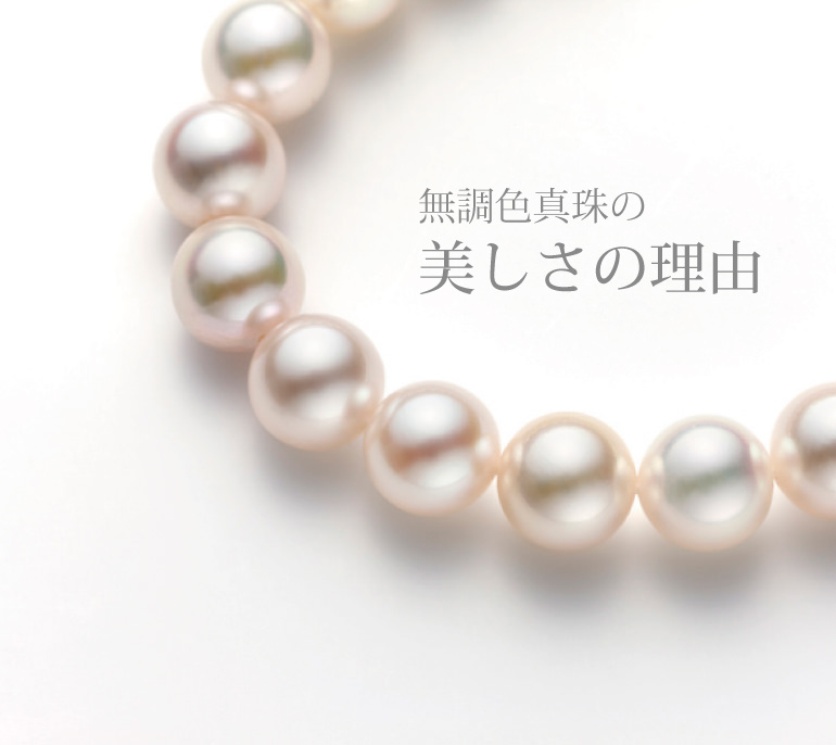 無調色で越し物の宇和島産最高級アコヤ真珠のみを厳選し仕立てています。