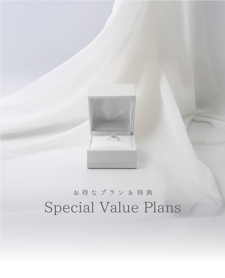 婚約指輪、結婚指輪選びは一生に何度もあるものではありません。だからこそLUCIR-K BRIDAL浜松では、購入の目的や重視したいポイントに合わせて選べるよう、複数のお得なプランと特典をご用意しました。まずは全体を見比べながら、ご自身に合ったプランを確認してみてください。