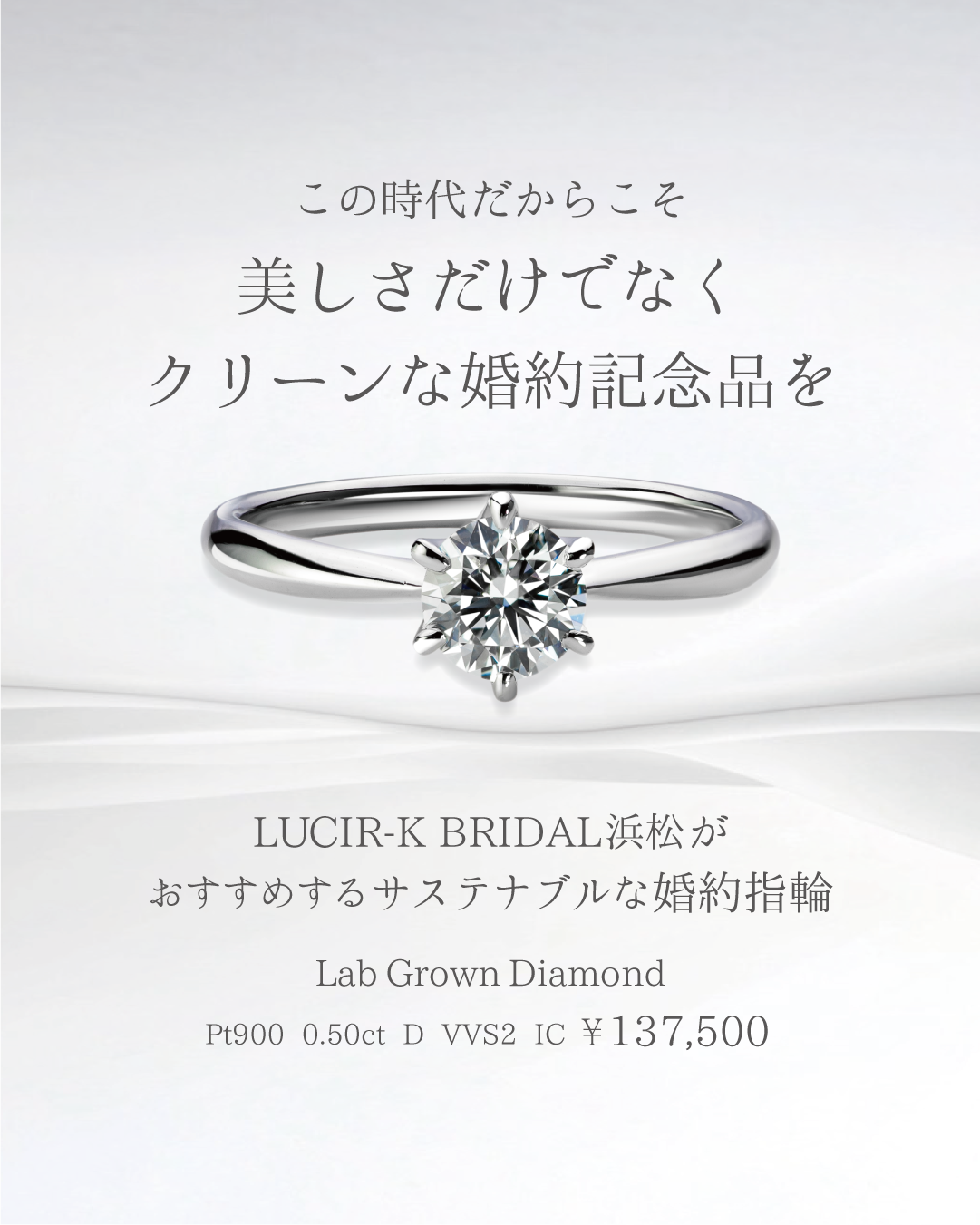 指輪選びには、価格への不安やデザイン選びの迷い、特典やサービス内容の違いなど、多くの悩みがつきものです。「どこまで予算をかけるべきか」「自分たちに合った指輪はどれなのか」と悩まれる方も少なくありません。LUCIR-K BRIDAL浜松では、その違いを大切にし、一組一組のお客様に寄り添った指輪選びができるよう、考え方に合わせたプランをご提案しています。